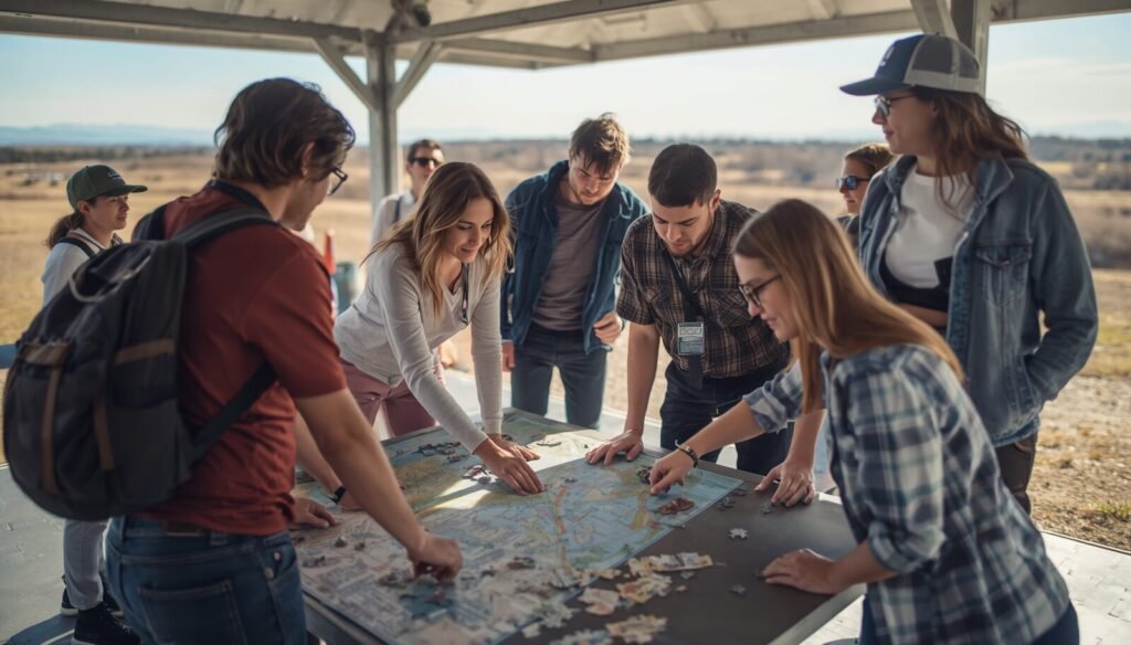 Experiencias por estaciones que combinan lógica, acción y estrategia para fortalecer al equipo.